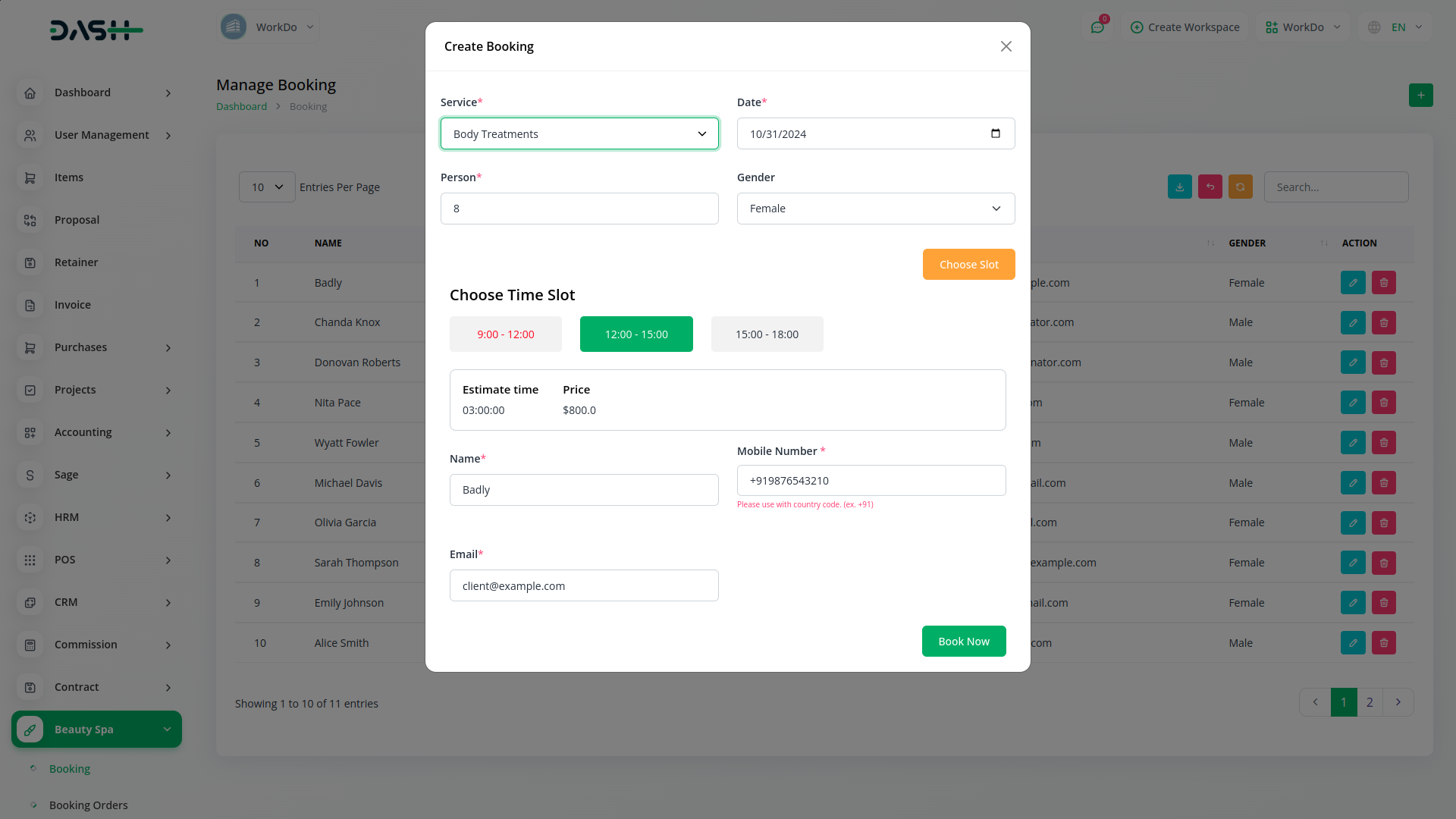 Introduces a game-changing Beauty and Spa Management Integration, designed to redefine how salon businesses operate. This comprehensive module serves as a one-stop solution, facilitating seamless booking processes, efficient slot management, and an enhanced experience for both salon owners and their clients.